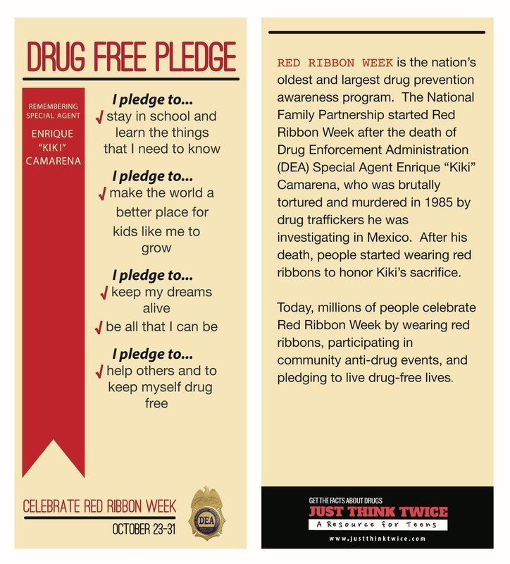 Red Ribbon Week is America’s oldest and largest drug prevention awareness program held each year from October 23-31. Commemorating the tragic murder of DEA Special Agent Enrique “Kiki” Camarena, Red Ribbon Week serves as a reminder to celebrate living drug-free.